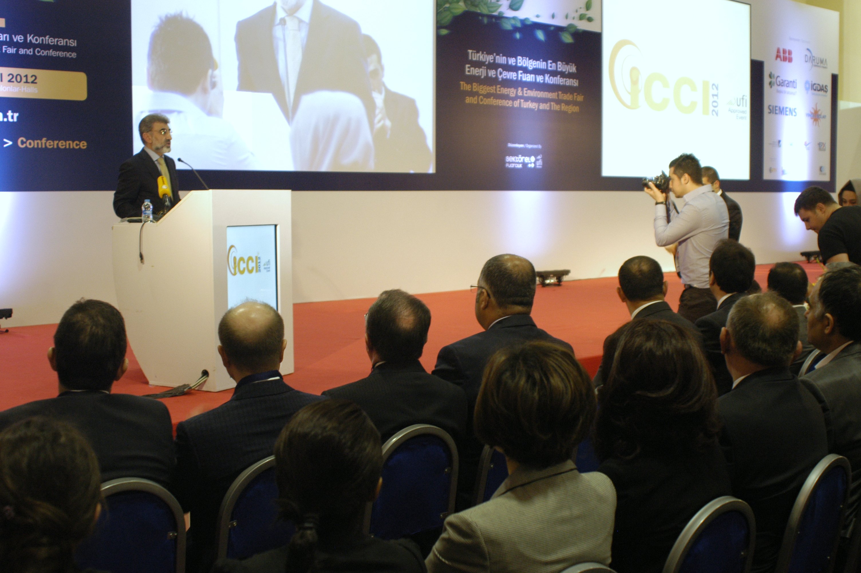 ICCI 2012 started with the speech of Turkey's Energy Minister Taner Yıldız. After the conference, Taner Yıldız took a walk in fair area, visited our stand and had information about our activities in energy sector.