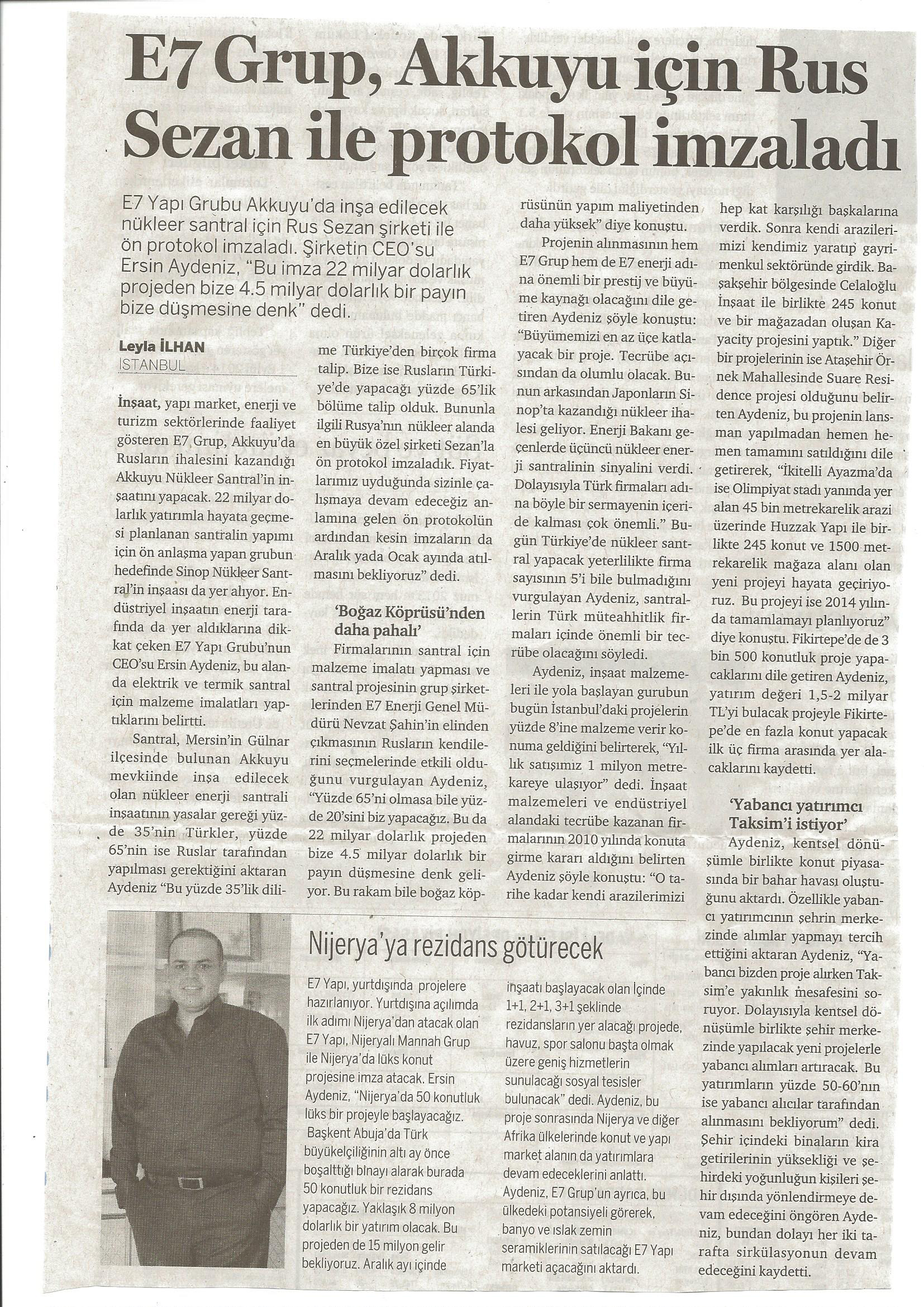 "E7 GRUP RUS SEZAN İLE PROTOKOL İMZALADI.